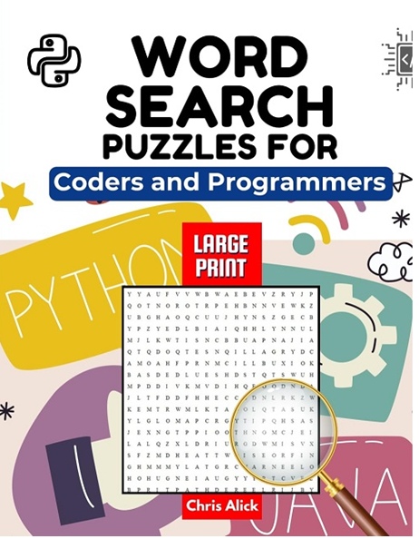 “Word Search Puzzles for Coders And Programmers” is the perfect storm of a gift: it’s thoughtful, engaging, incredibly affordable and easy to buy. Chris Alick has done a fantastic job creating a product that provides a much-needed mental break for programmers while celebrating the world they love.